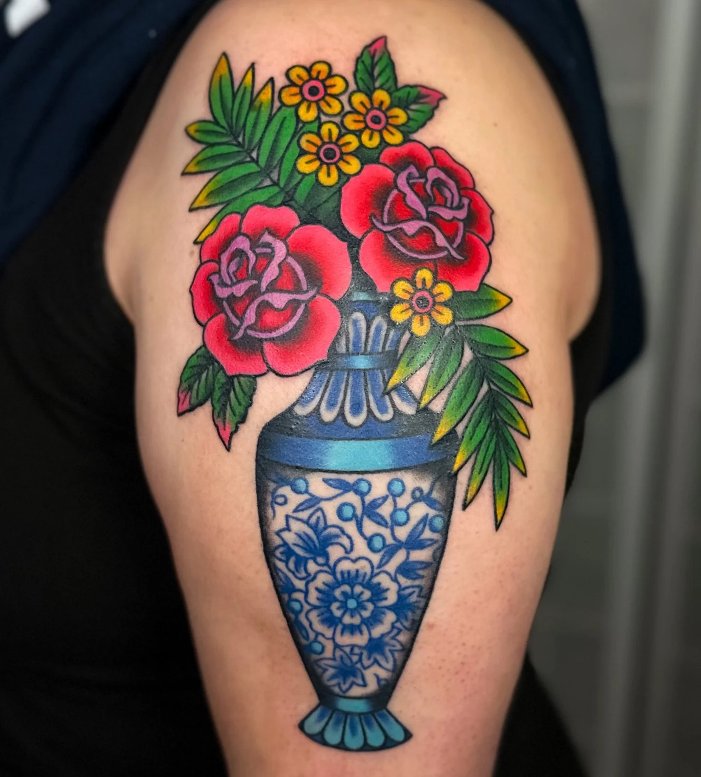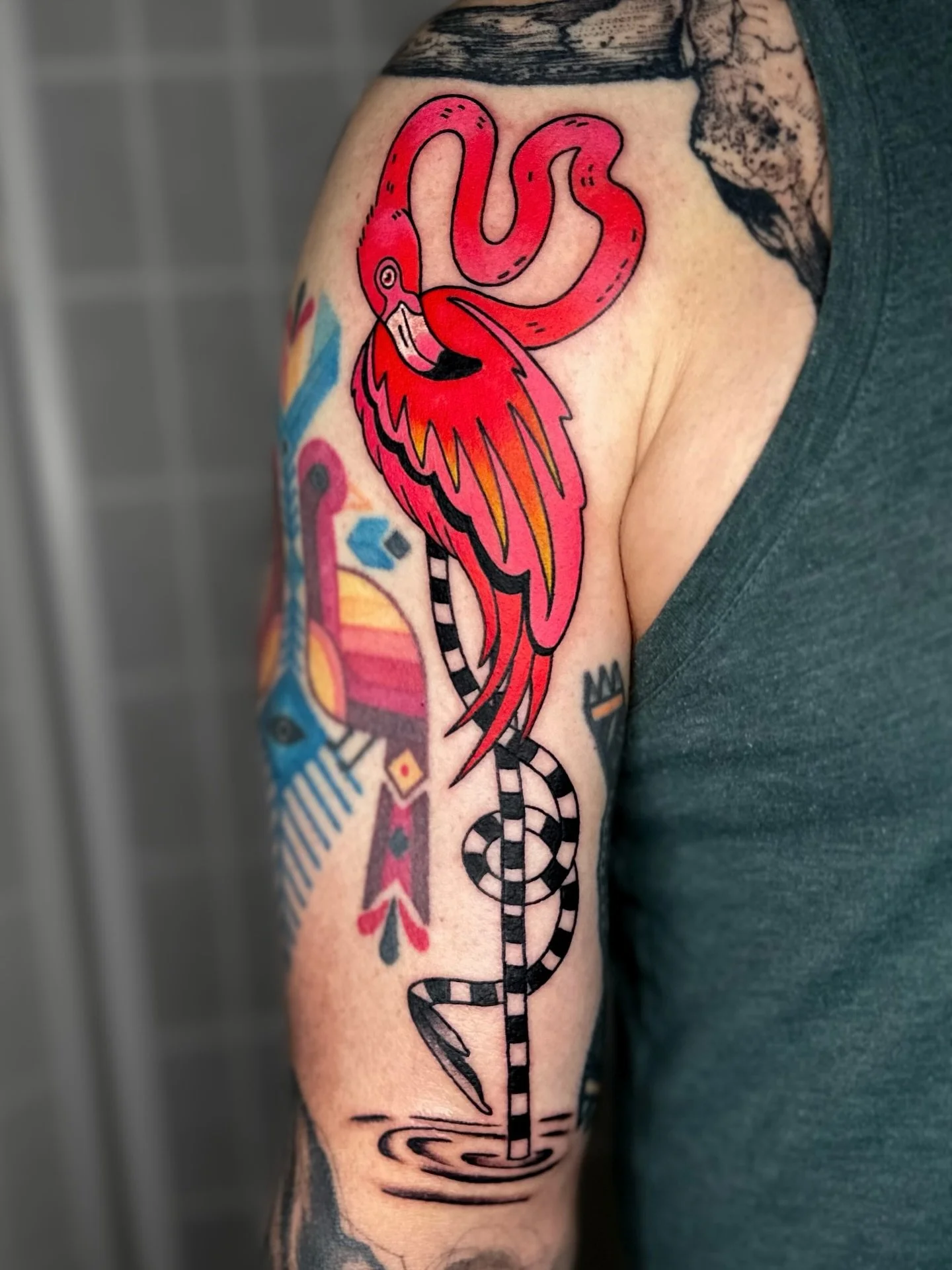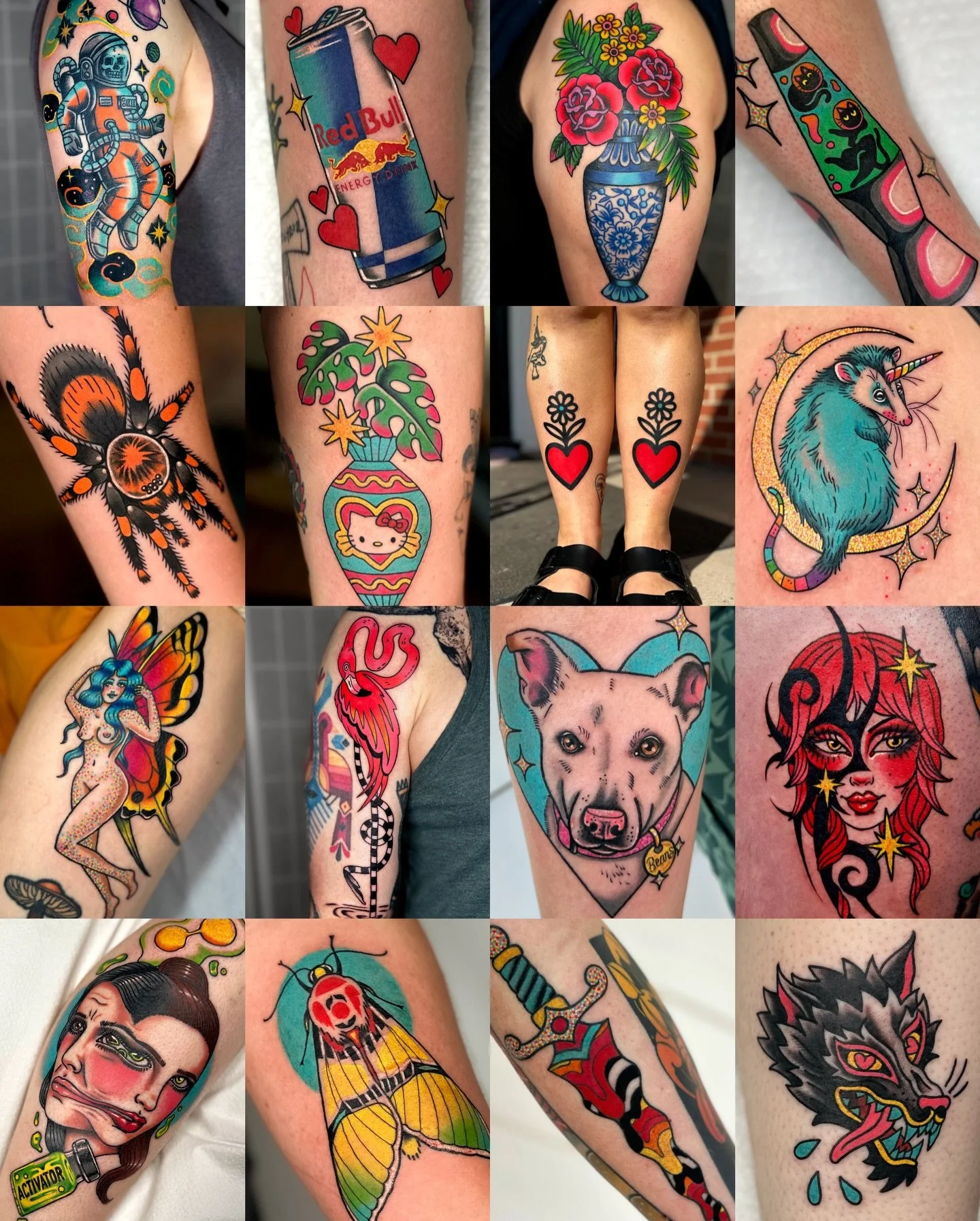 Some of my favorite styles to tattoo are bold black work, bubblegum traditional, American traditional, and illustrative.