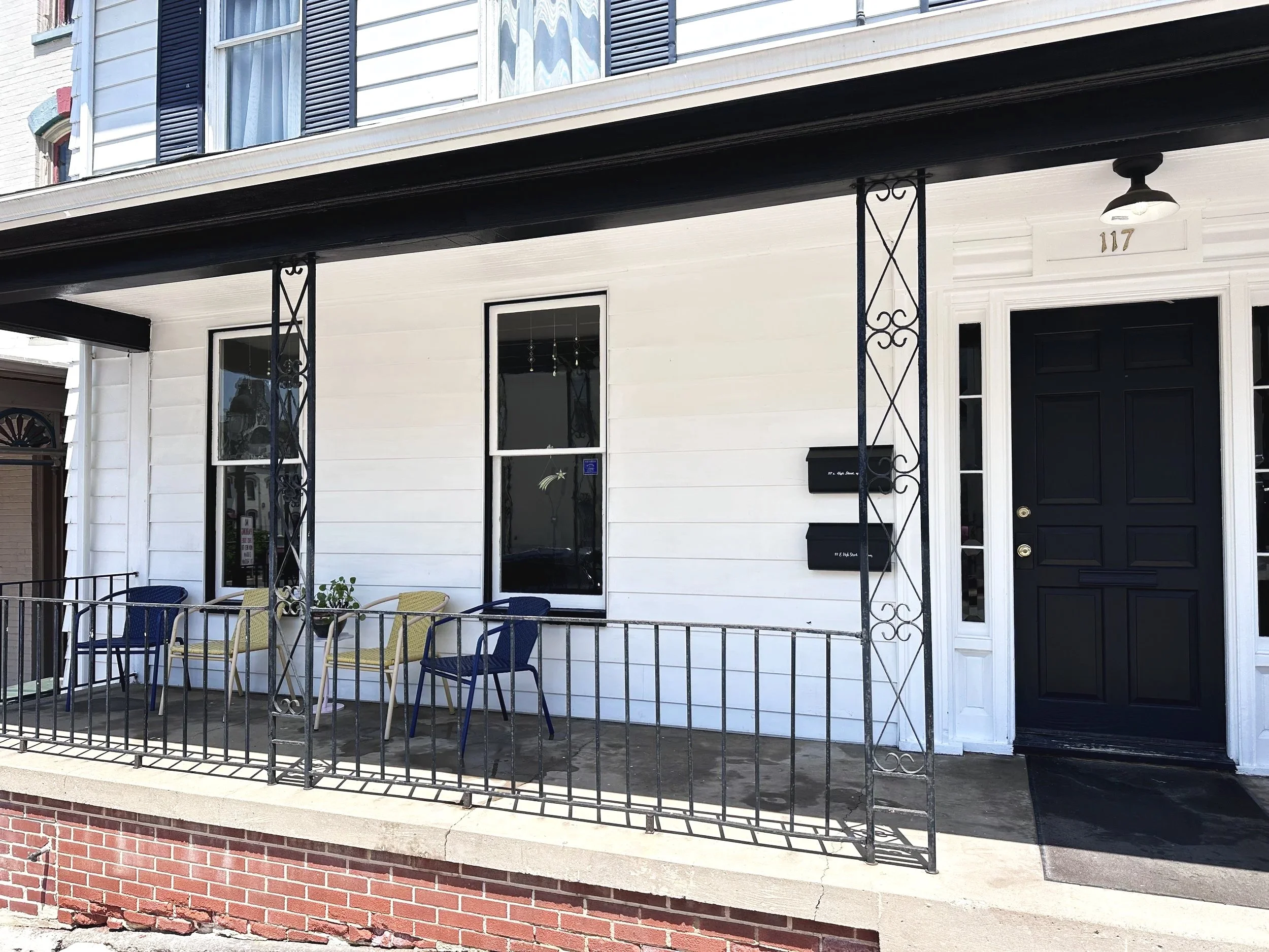 Located in the heart of Bellefonte’s historic district, at 117 East High Street, on the main floor (black door).