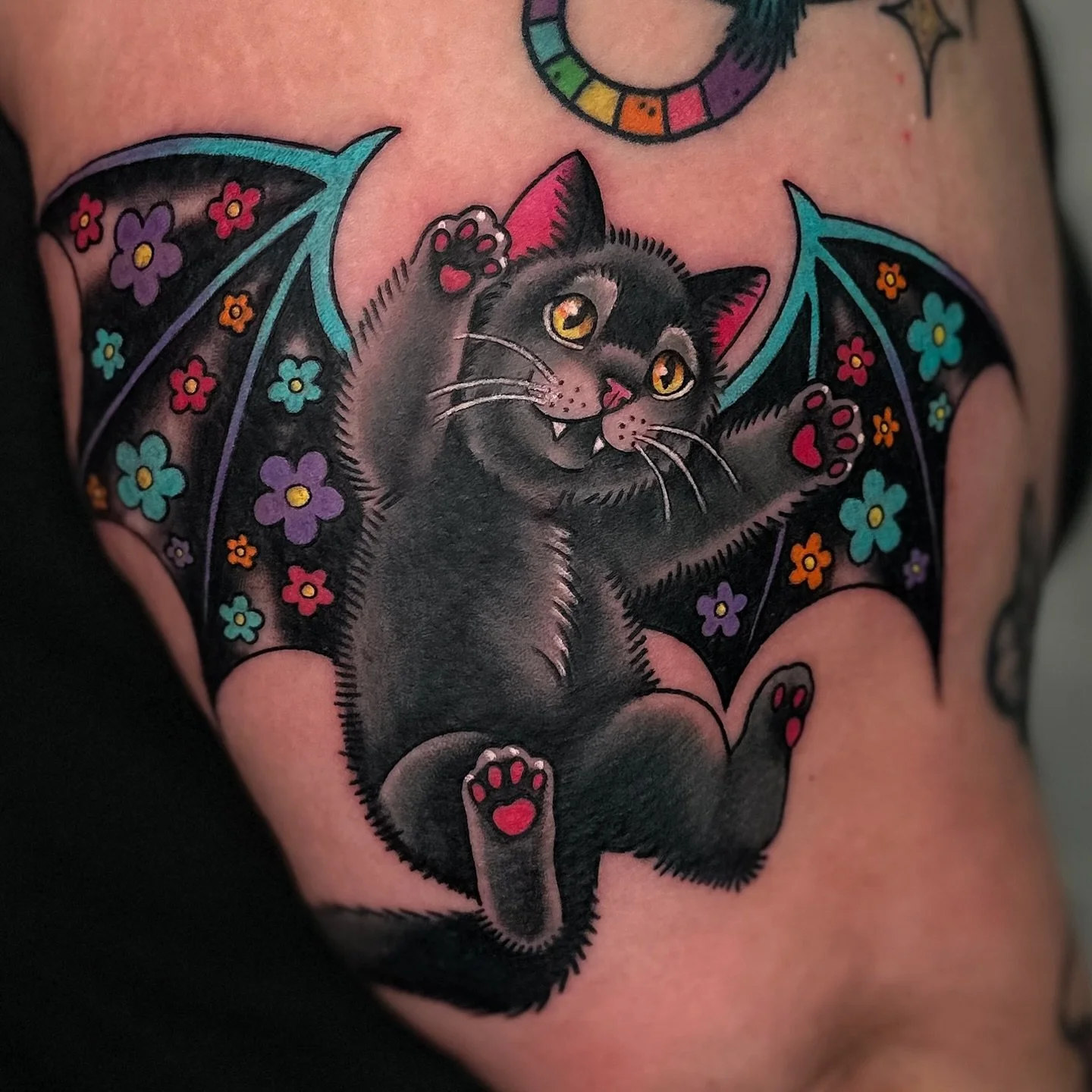 Some of my favorite styles to tattoo are bold black work, bubblegum traditional, American traditional, and illustrative.